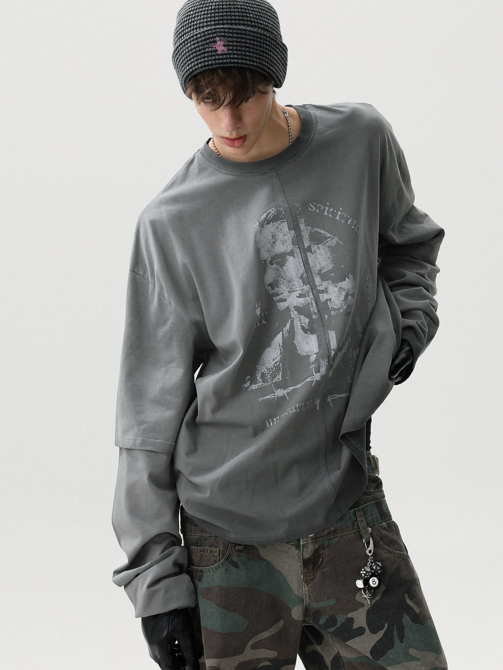 DISTRESSED AMERICAN LONG-SLEEVE T-SHIRT